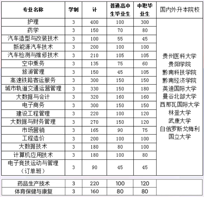 备注:招生计划以贵州省招生考试院公示为准。