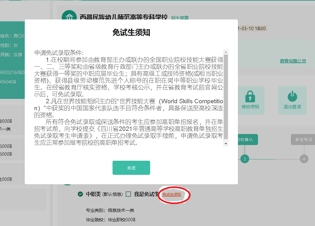 所有符合免试录取或保送条件的考生应参加高职单招报名,并在单招考试前,向学校提交《四川省2022年高职院校单独招生免试录取考生申请表》。