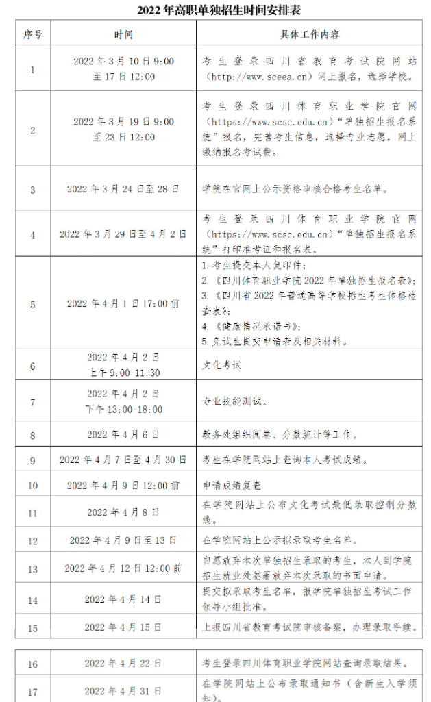(2)《四川体育职业学院2022年单独招生报名表》、《四川省2022年普通高等学校招生考生体格检查表》和《健康情况承诺书》。