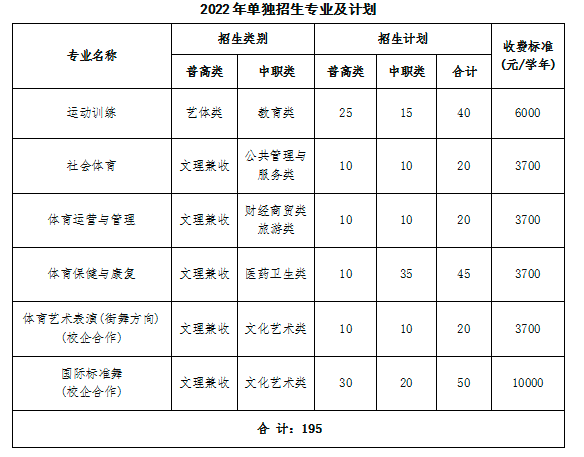 报考运动训练、社会体育、体育运营与管理、体育保健与康复专业(普高类)的考生,参加体育专业技能测试,主要考核身体素质和专项技术,满分200。