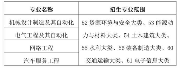 (1)三等功鼓励政策退役士兵、技能大赛鼓励政策考生招生计划包含在以上招生计划内。技能大赛鼓励政策考生录取比例不超过考生报考专业总计划的15%。