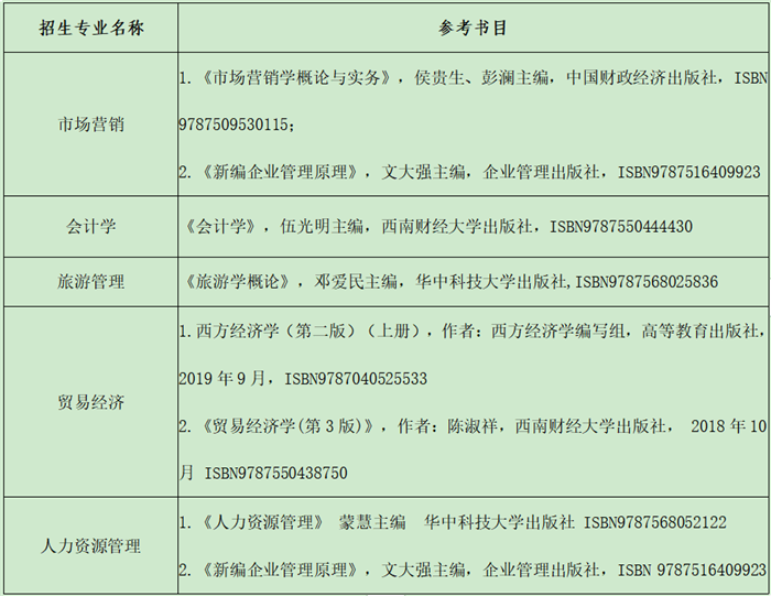 2.专业考试参考书目如下表