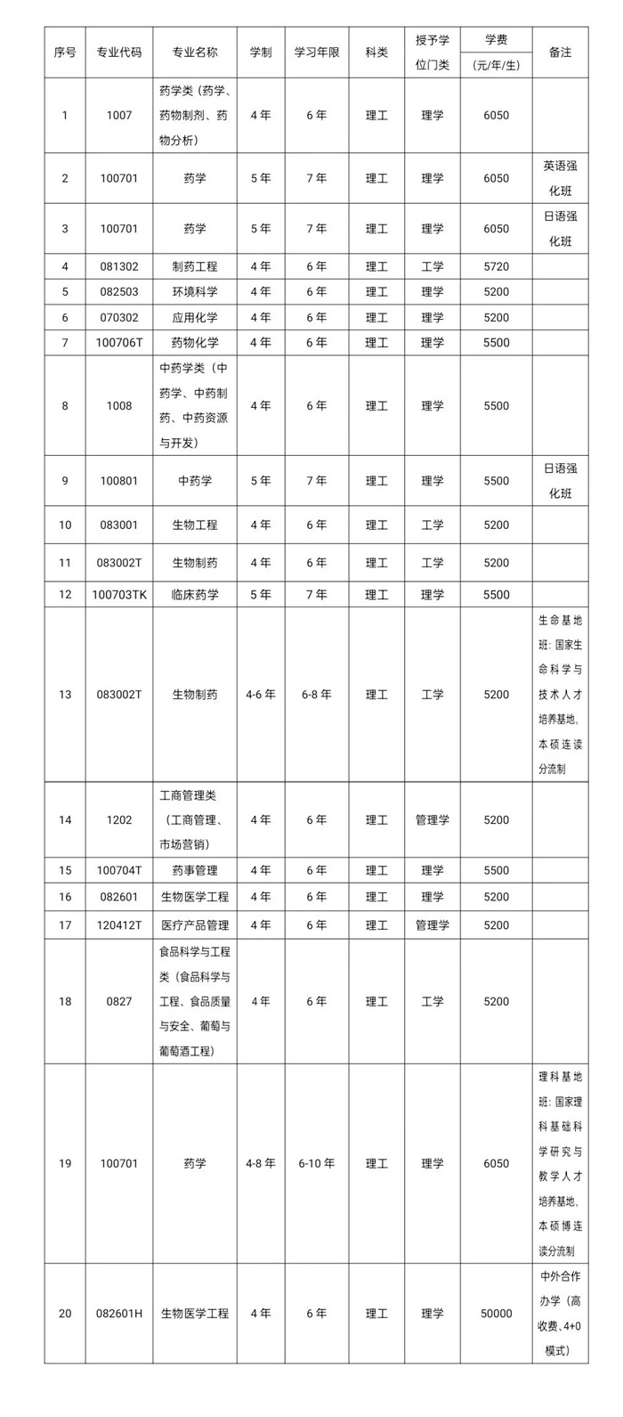 学校将按照国家要求,落实面向中西部和贫困地区的招生计划,并根据学校人才培养目标、办学条件、学生就业和各省市生源质量等实际情况确定各专业招生计划,重点培养药学领域特色学科和重点学科专业人才。学校招生计划按照省教育厅核准的分省分专业招生计划执行;高考综合改革试点省(市)设置的招生专业计划,对选考科目的要求、综合素质评价档案的使用办法,以当地教育行政部门(或招生考试部门)及高校官方网站公布为准。
