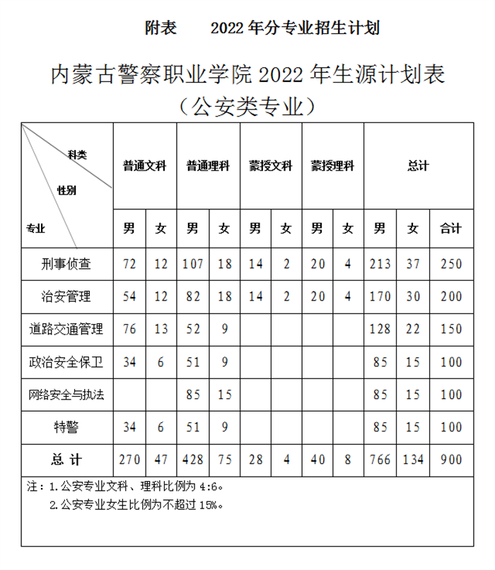 (一)2022年计划招生1050人,公安类专业900人,非公安类专业150人,公安类专业女生不超过招生计划的15%。