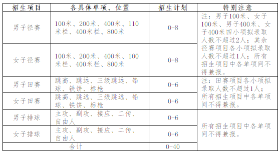 田径、男子排球拟录取到行政管理专业,女子排球拟录取到经济学类专业。