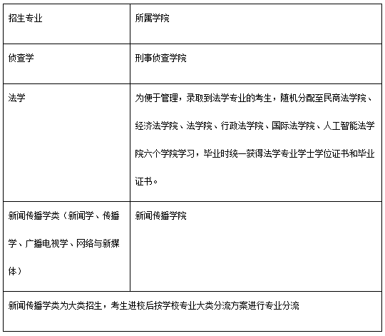 注:新高考改革省份的考生报考侦查学专业需符合我校在其所在省公布的选考科目要求(选考政治)。