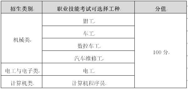 考生可根据自己报考类别选择一个工种进行职业技能考试,报考类别与工种对应情况如下表: