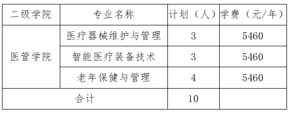 招生计划10人,招生专业为除临床医学以外的其他单招专业。