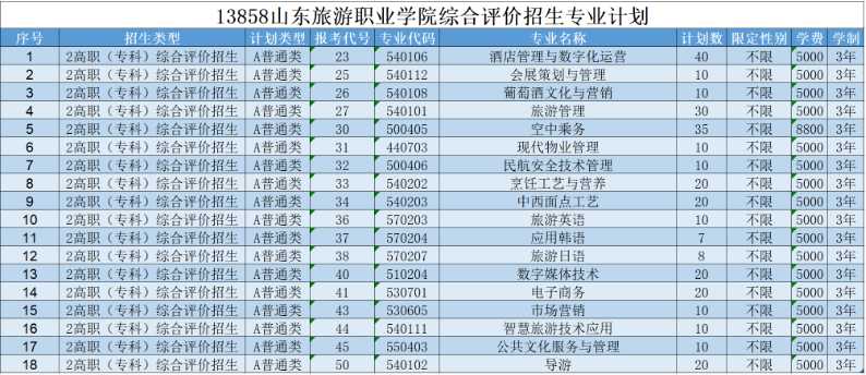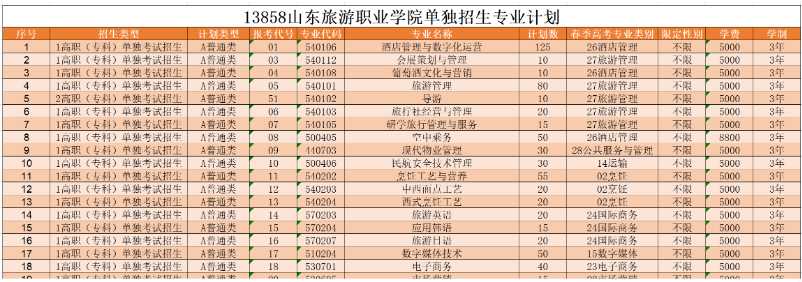 山东旅游职业学院2023年单独招生(普通类)计划680人、单独招生(退役军人)计划20人,综合评价招生计划300人,总计划1000人,具体分专业计划以山东省教育厅审核为准。