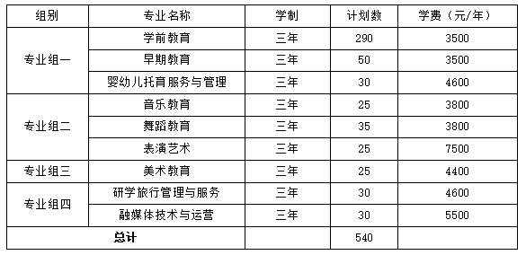 第十一条 我校2023年单招总计划为540人,具体单招专业、计划和收费标准如下表。