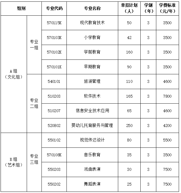 第十四条 填报我校志愿的所有考生选择A组(文化组)时在专业一、二组中任选2个专业进行填报,选择B组(艺术组)时在专业三中任选2个专业进行填报,并表明是否同意专业调剂(注:不可同时跨A组和B组填报)。在报名系统中多填专业视为无效。