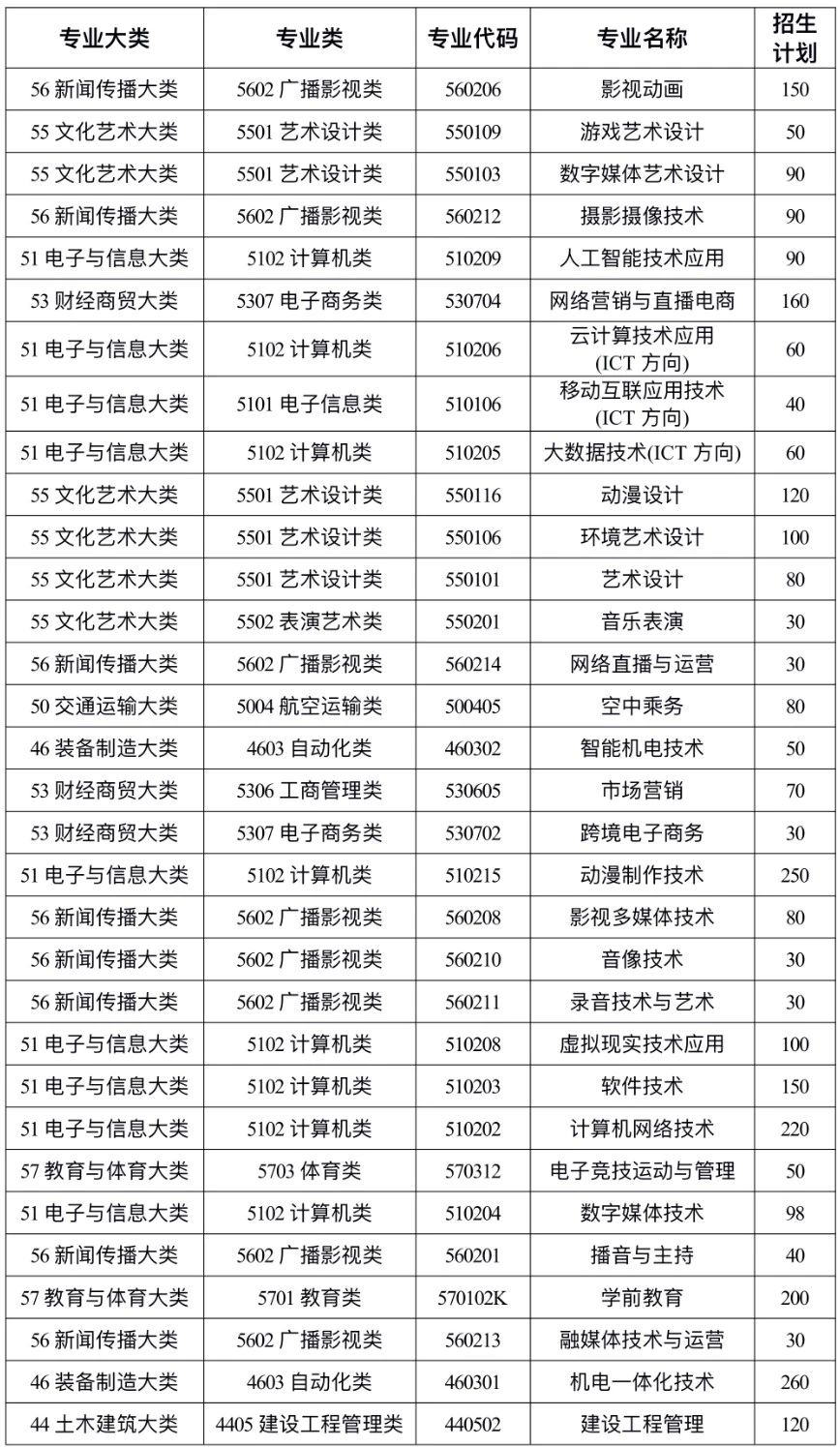 2024年招生专业及计划数一览表