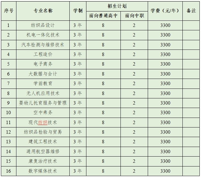 备注:所有专业均文理兼收。最终招生专业及计划以教育厅下达为准。