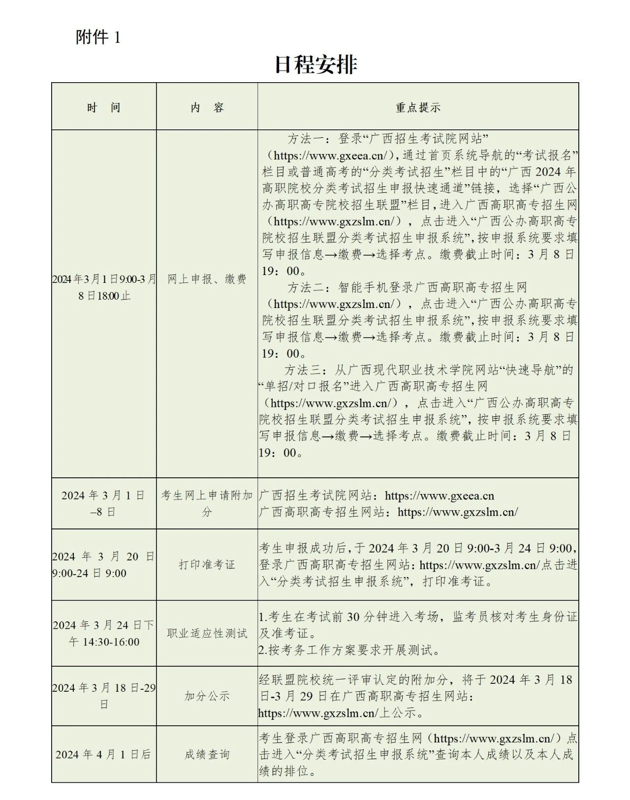 经联盟院校统一评审认定的附加分,于2024年3月18-29日在广西高职高专招生网(https://www.gxzslm.cn/)进行公示。