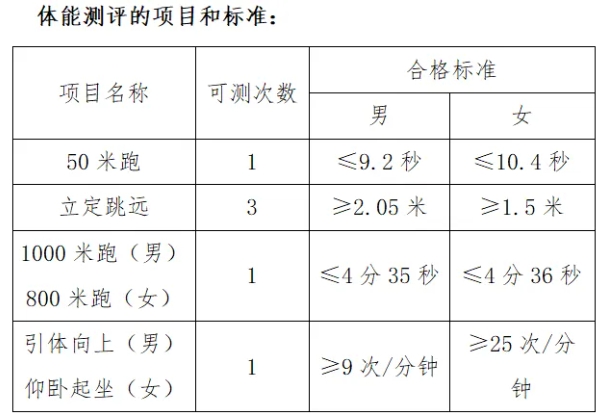 面试、体检、体能测评标准: