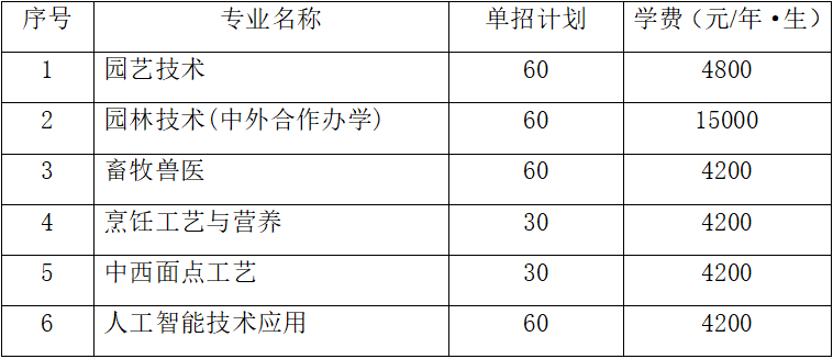 2024年单独考试招生计划300人(包含技能拔尖人才免试入学考生),园林技术(中外合作办学)专业,是我院与俄罗斯国立农业大学合作办学,单列计划60人。招生专业及计划详见专业信息表。