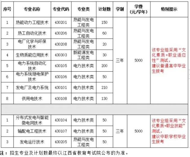 5.电力系统自动化技术、电力系统继电保护技术等2个专业仅招收物理科目组考生。