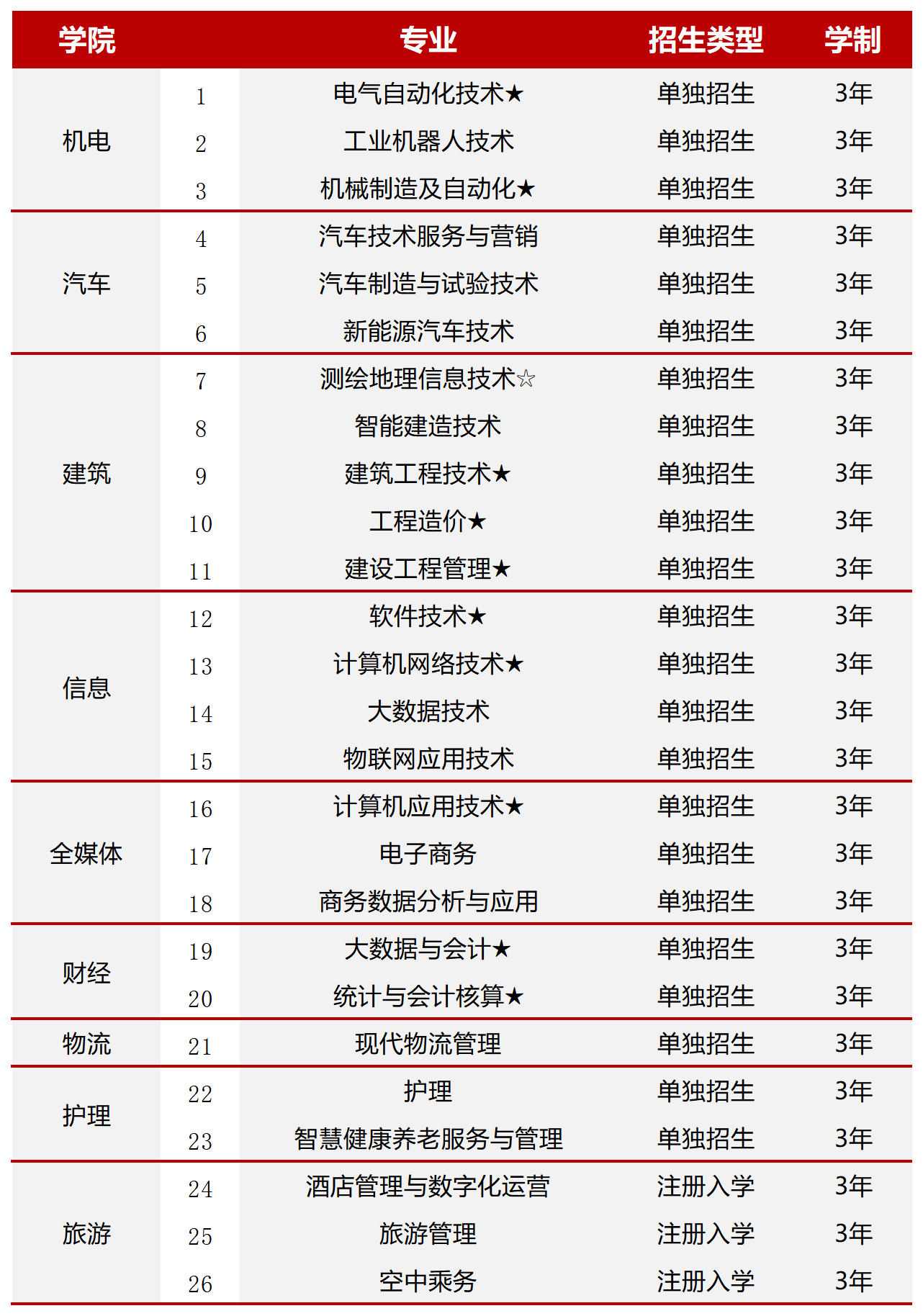 ②★为辽宁省高等职业教育“兴辽卓越”专业群建设专业。