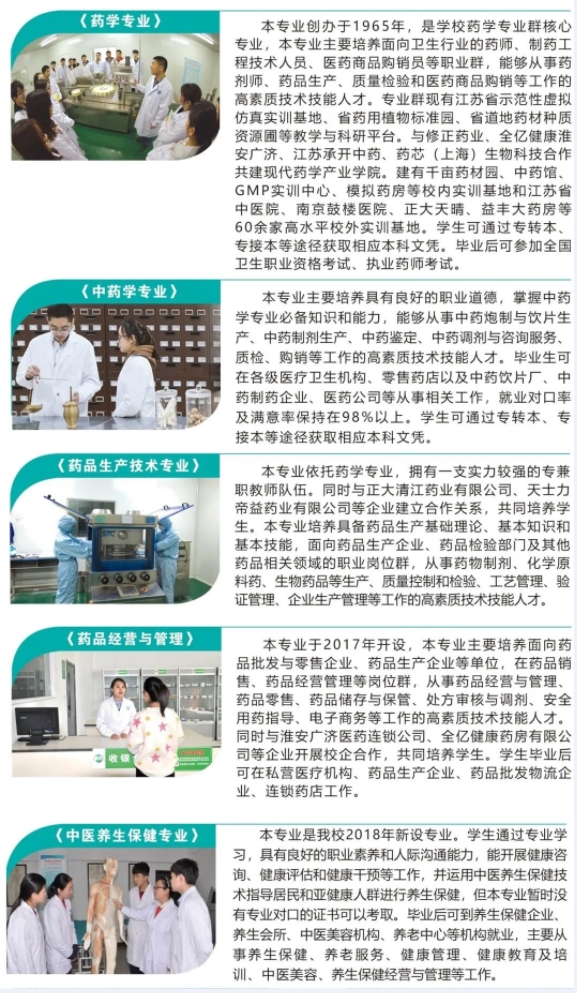 2.报考我校考生须参加江苏省高校招生统一体检,符合《普通高等学校招生体检工作指导意见》有关要求,并符合卫生医药行业就业的要求。